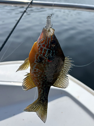 coldfront後で濁り+まだ水温が少し低いとのことでしたが、トップやスイムベイトで楽しむことができ、一本グッドサイズもキャッチできました。 |