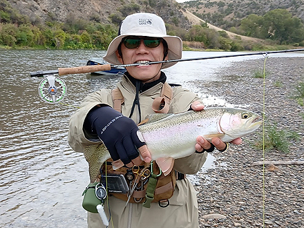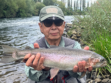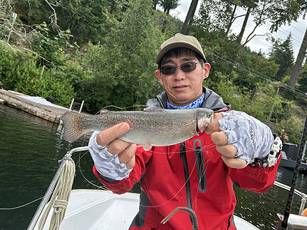 先日はお世話になりました。無事帰国しました。釣りはキングサ-モン 1匹でした。他の人は同サイズのRainbowをキャッチしていました。Rainbowは美しいですね。 |